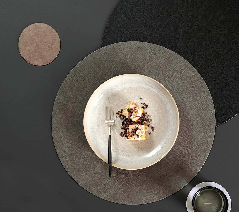 ASA Selection Tischset Rund Grau Silver Cloud Vintage Leder-Optik Platzset