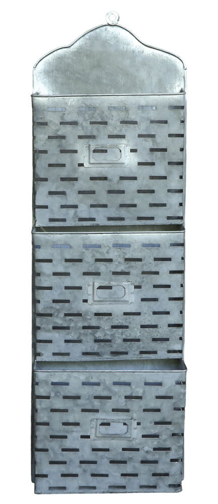 Chic Antique Tablett Zink mit 4 Fächern 41 x 24 cm Shabby Vintage-Stil Grau