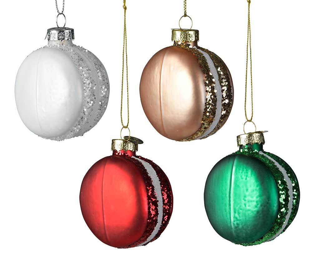 - Lieferumfang: 4 Christbaumanhänger in Macarons-Optik.