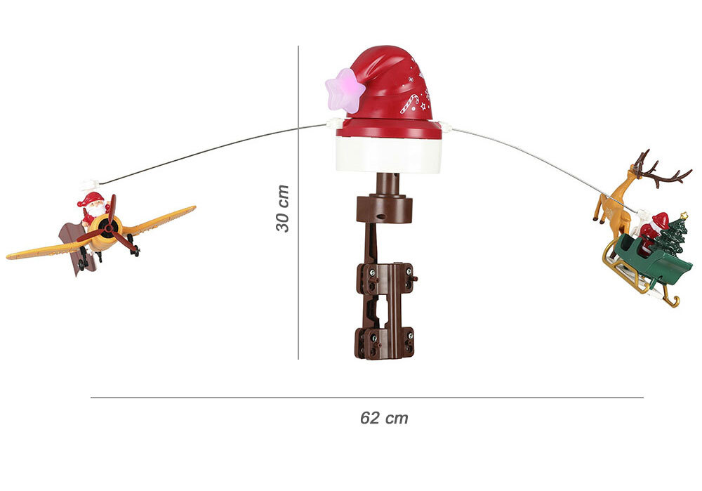 Flying around the christmas tree! Diese Christbaumspitze setzt deinen Weihnachtsbaum gekonnt in Szene! Santa Clauses Rentierschlitten dreht besinnlich seine Runden um den Christbaum und ist ein überragender Hingucker. Als Gegengewicht ist Santa auf der anderen Seite mit dem Flugzeug unterwegs! Der Stern an der Weihnachtsmütze wechselt im seichten Intervall die LED-Farbe und rundet das zauberhafte Design stilvoll ab. Untermalt wird das Ganze durch besinnliche Weihnachtsmusik!