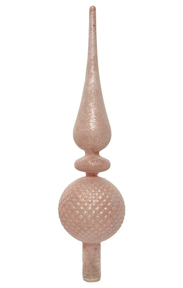 Stimmig bis in die Spitze! Diese Christbaumspitze ist in zartem Rosa aus Echtglas gefertigt und wunderschön verziert. Die schneebedeckte Oberfläche und dezenter Glitzer verleihen der Spitze einen besonders frostigen Look.