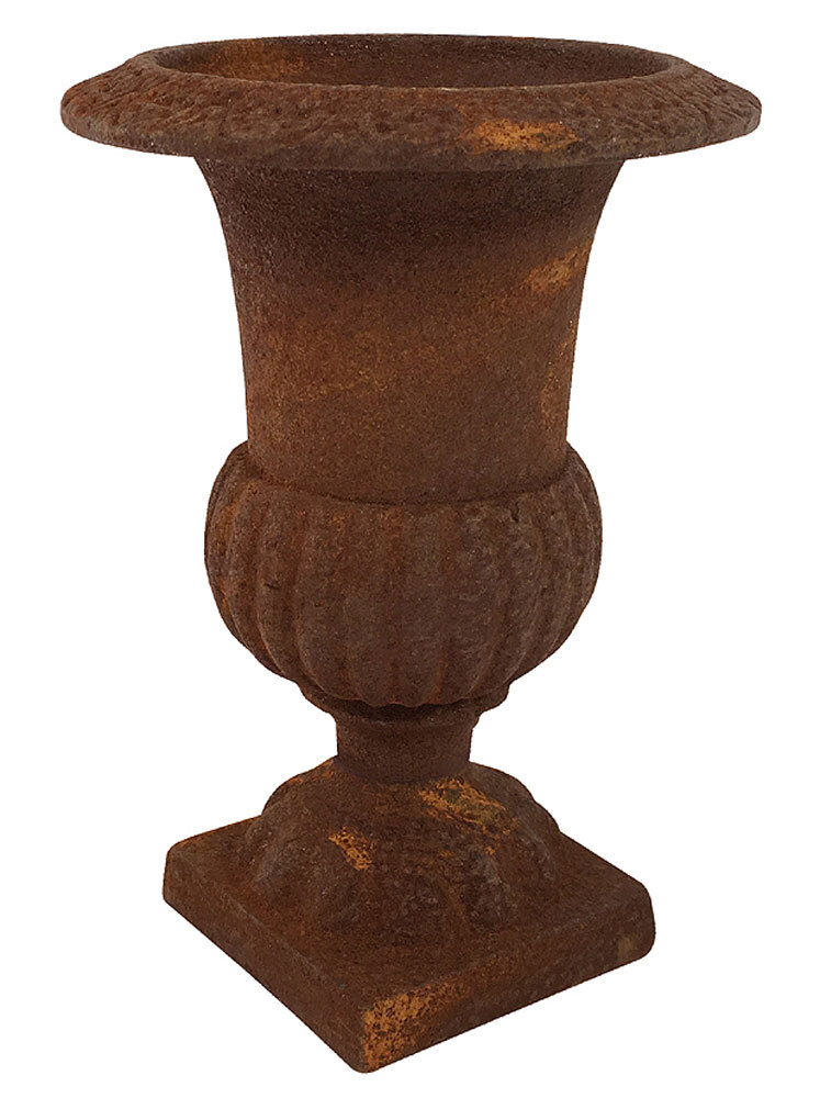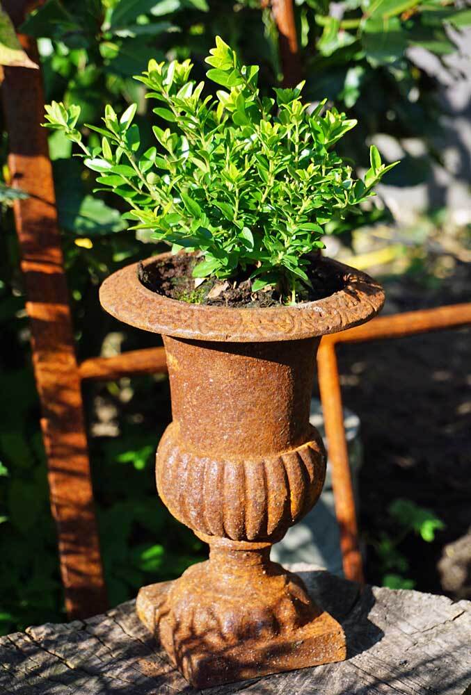 - Die Amphore wurde nach jahrhunderte alter handwerklicher Tradition aus schwerem Gusseisen gefertigt und rostig patiniert.