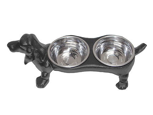 Der Napfhalter sieht besonders originell aus und steht mit 2 herausnehmbaren Futternäpfen für die tägliche Futteraufnahme bereit. Aus schwerem Gusseisen gefertigt, rutscht er bei dem spielerischen Kampf mit dem Futter nicht so leicht weg und zerkratzt den empfindlichen Fußboden. Das nostalgische Design lebt von der originellen Hundeform, die mit viel Liebe zum Detail gefertigt wurde. Ein origineller Blickfang, nicht nur für Hundeliebhaber!
