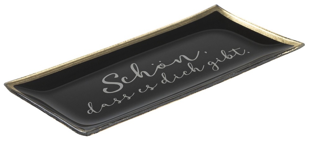 Dekorativer Glasteller in schönem Design und Spruch - Schön, dass es dich gibt - . - Dieser rechteckige Deko-Teller ist das perfekte Geschenk für Geburtstag, Jubiläum oder ein andere festliche Anlässe. Das schöne Design verleiht dem Teller eine romantische Note, während der goldene Rand einen Hauch von Luxus und Raffinesse hinzufügt. Eine schöne Geschenkidee für besondere Menschen in Deinem Leben.