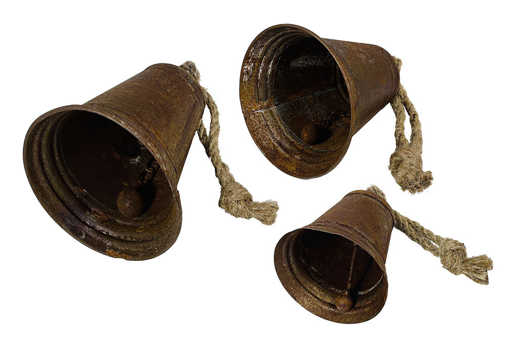 Glocken-Set in rustikaler Rost-Optik - Diese rostigen Zink-Glocken sind ein außergewöhnliches Deko-Accessoire für die festlichen Weihnachtstage!