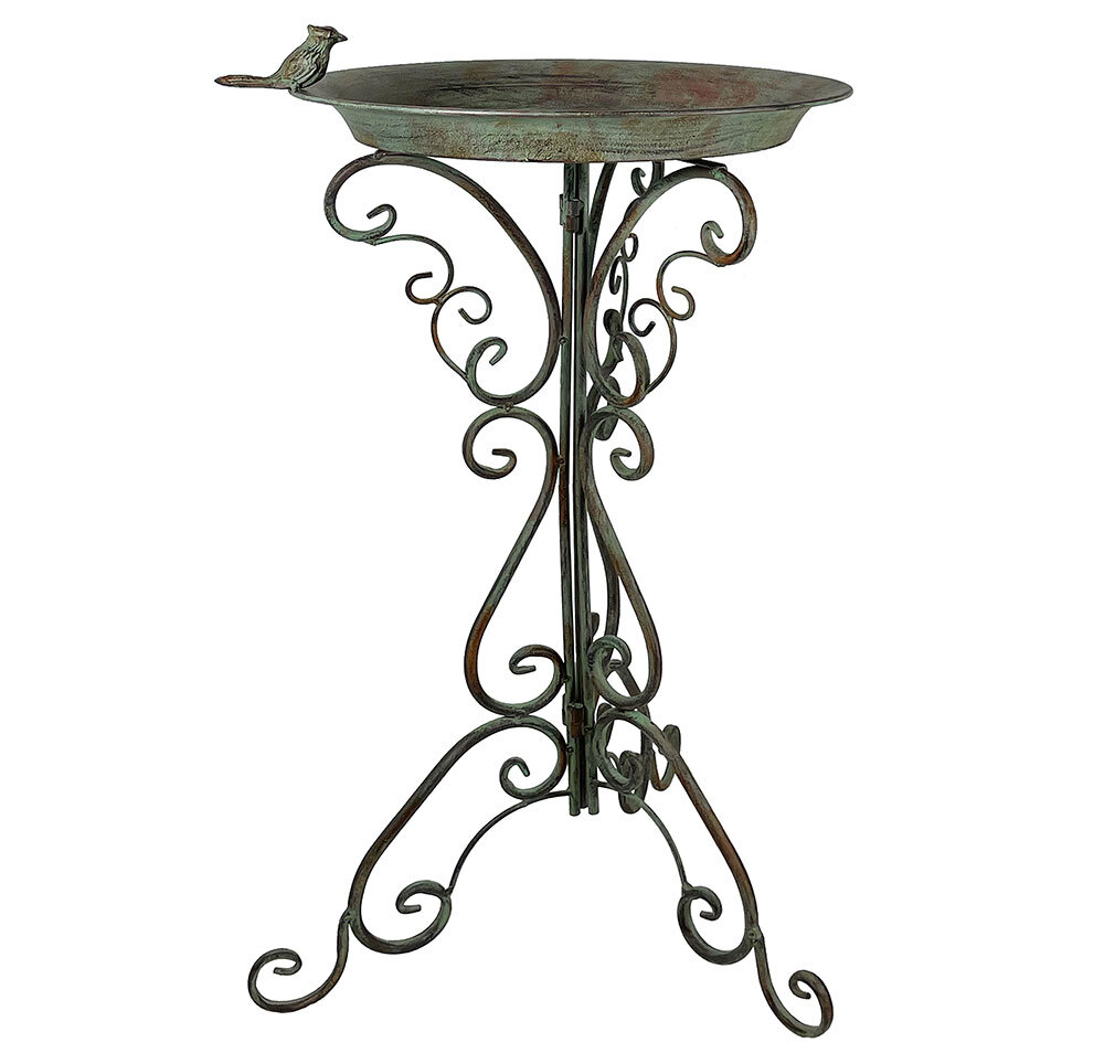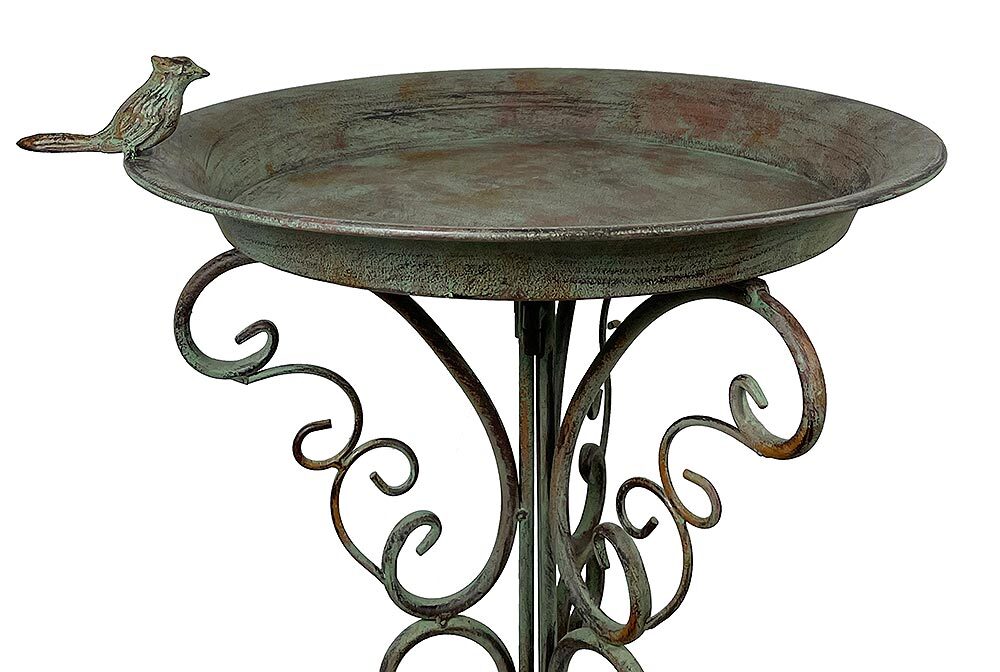 - Die Vogeltränke ist sehr detailliert, nach traditionellem Vorbild aus Eisen gefertigt und grün-braun lackiert.