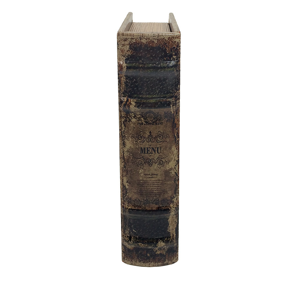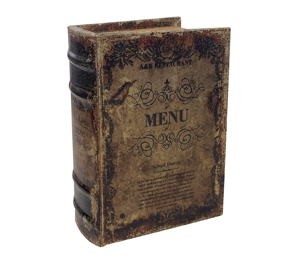 Zur Aufbewahrung von Geld, Schmuck und anderen Wertsachen ist diese schöne Holzschatulle in Buch-Optik ideal geeignet. Sowohl der Buchrücken als auch die "Seiten" sind optisch, mit viel Liebe zum Detail gefertigt worden. Sogar die Außenhaut fühlt sich wie ein echtes, altes, mit Leder bezogenes Buch an. Das Buch sieht aus wie ein altes Menü-Buch und sollte in keiner Literatur-Sammlung fehlen - besonders nicht wenn es so schön antik aussieht wie dieses Exemplar! Im Regal fällt dieses hohle Buch zwischen den echten Büchern kaum auf und wird somit zum genialen Versteck für Ihre Wertsachen!