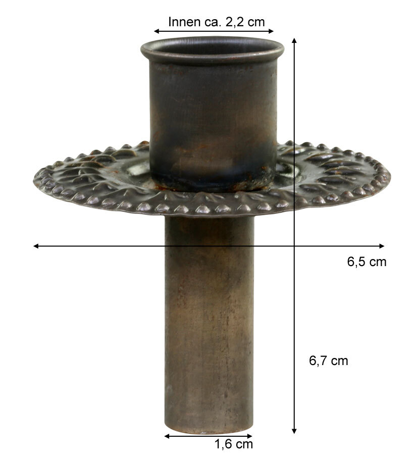 - Maße Kerzenhalteraufsatz: (Höhe x Durchmesser) ca. 6,7 x 6,5 cm.