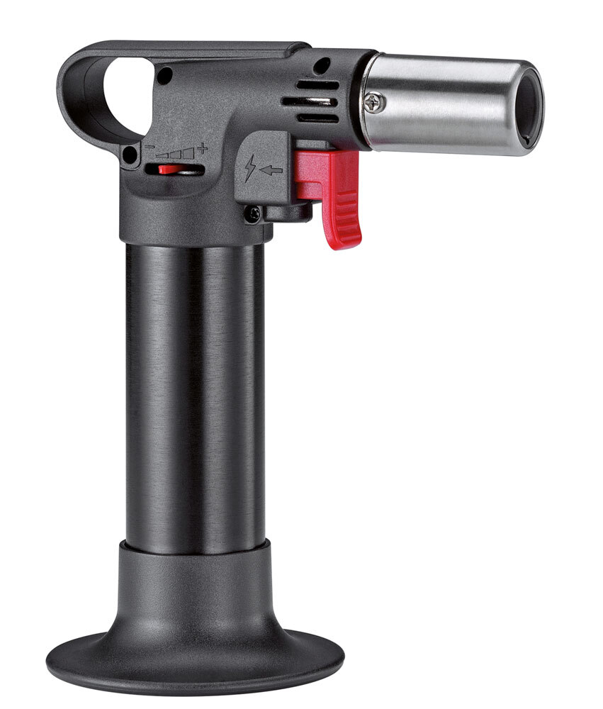 Küchenprofi Gas-Brenner CLASSIC - Sind Sie bereit, Ihrer Küche neuen Schwung zu verleihen? Mit diesem vielseitigen Helfer zaubern Sie mühelos karamellisierte Crème Brûlée, entfernen Paprikahaut im Handumdrehen oder schmelzen Käse perfekt. Auch Roastbeef und Baiser profitieren von der präzisen Flammenkontrolle, die Sie individuell anpassen können.