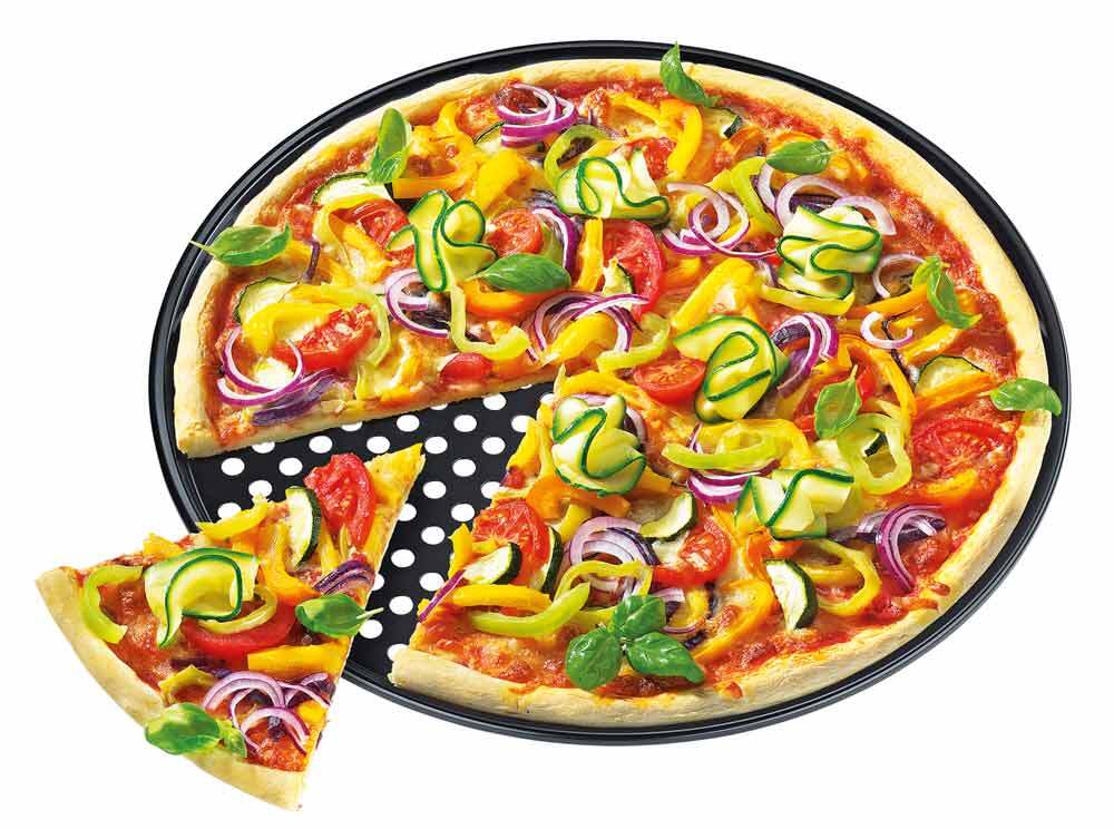 Küchenprofi Pizzablech BAKE ONE - Perfekt knusprig – immer wieder! Mit diesem Pizzablech wird der Boden Ihrer selbst gemachten Pizza unwiderstehlich kross. Dank der cleveren Lochung des robusten Stahlblechs kann die heiße Luft optimal zirkulieren und gleichmäßig verteilt werden – für ein Ergebnis, das begeistert. Bravissimo! Das vielseitige Pizzablech ist nicht nur ideal für Pizza, sondern auch perfekt geeignet, um Brot knusprig aufzuwärmen oder goldgelbe Pommes im Ofen zu zaubern. Und das Beste: Dank der exzellenten Antihaft-Beschichtung gleiten Ihre Leckereien ganz mühelos auf den Teller – für Genuss ohne Aufwand!