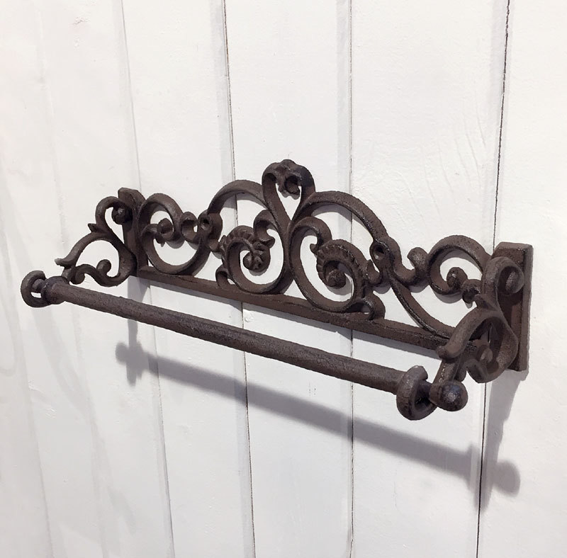 Dieser formschöne Küchenrollenhalter im Landhausstil ist in traditioneller Art und Weise aus Gusseisen gefertigt und antik-braun lackiert.