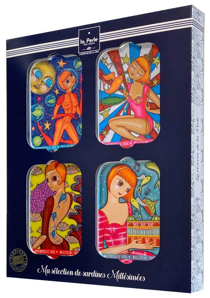 Zur Freude aller Sammler enthält dieses Box-Set vier Dosen der beliebten Jahrgangs-Sardinen. Die Dosen wurden von der in La Rochelle ansässigen Künstlerin Coralie Joulin wunderschön gestaltet.