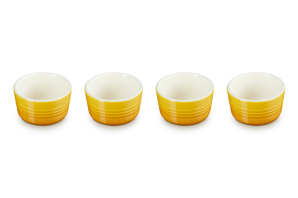 Dieses entzückende Set mit vier Mini-Förmchen ist aus hochwertigem Le Creuset Steinzeug gefertigt und eignet sich ideal für Dips, Soßen, Knabberzeug und mehr.