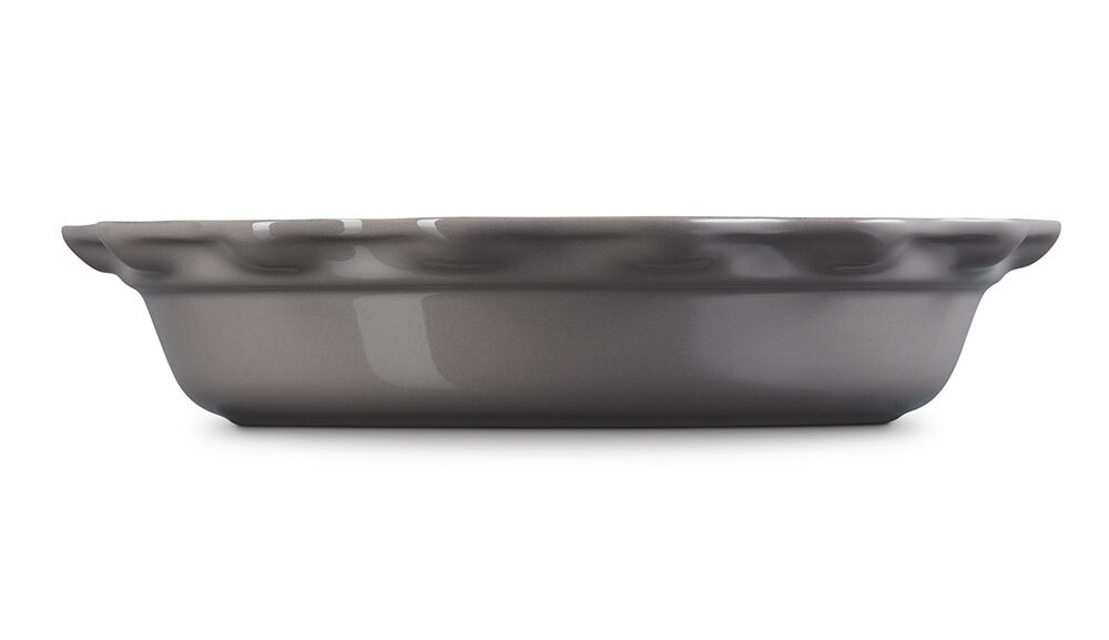 Die Le Creuset Pie-Form aus Steinzeug in Flint Grau zaubert süße und herzhafte Kuchen, Quiches, Aufläufe und mehr und garantiert durch ihren wunderschön gewellten Rand eine elegante Präsentation! Gefertigt aus hochwertigem Steingut sorgt die außergewöhnlich gleichmäßige Wärmeverteilung für goldbraune, knusprige Krusten und perfekt gebackene Füllungen.