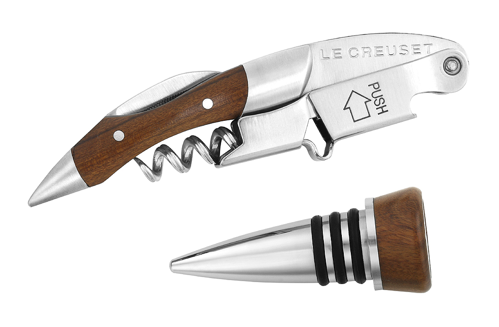 Le Creuset Wein-Öffner Set GS-190 - Bestehend aus einem Kellnermesser WT-110 in Holzausführung und einem Weinverschluss. Mit dem Profikellnermesser mit patentiertem 2-Step System öffnen Sie spielend jede Flasche. Ein integrierter Kronkorkenöffner und ein ausklappbarer Kapselabschneider machen es zum optimalen Begleiter unterwegs oder auf Reisen. Der Weinverschluss komplementiert dieses Set und macht es zu einem idealen Geschenk für Weinliebhaber.