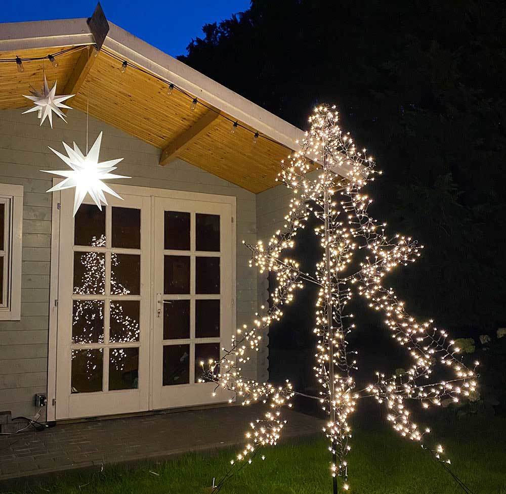 Bilder vom Baum mit weniger Lichtern und mit mehr Lichtern, am besten in Relation zu einem Menschen