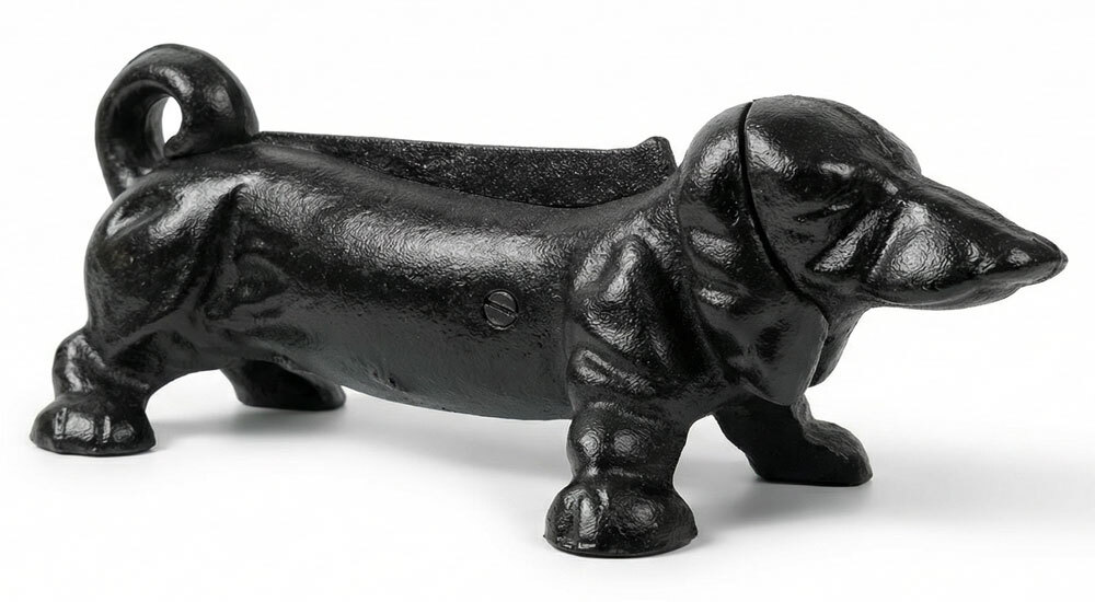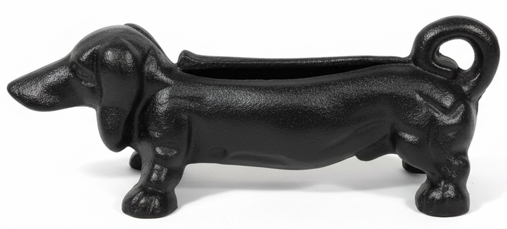 Im nostalgischen Stil gefertigt, ist der Dackel ein außergewöhnlicher Blickfang auf Terrasse, Veranda und vor der Tür.