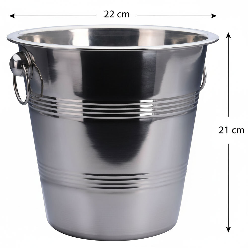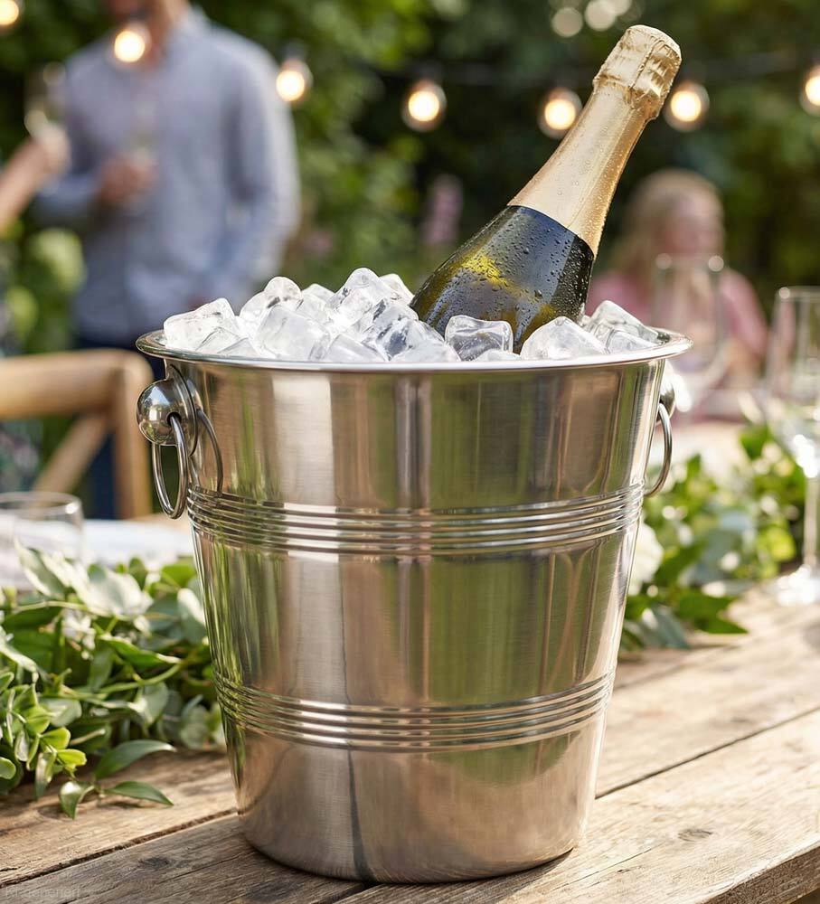 Ob romantisches Dinner, Gartenparty oder festliche Hochzeit – mit diesem hochwertigen Sekt- und Weinkühler aus Edelstahl servieren Sie Ihre Getränke stets perfekt temperiert. Die großzügige Größe von 22 cm bietet ausreichend Platz für handelsübliche 0,7–0,75 l Flaschen sowie Eiswürfel, damit Champagner, Sekt oder Weißwein lange angenehm kühl bleiben.