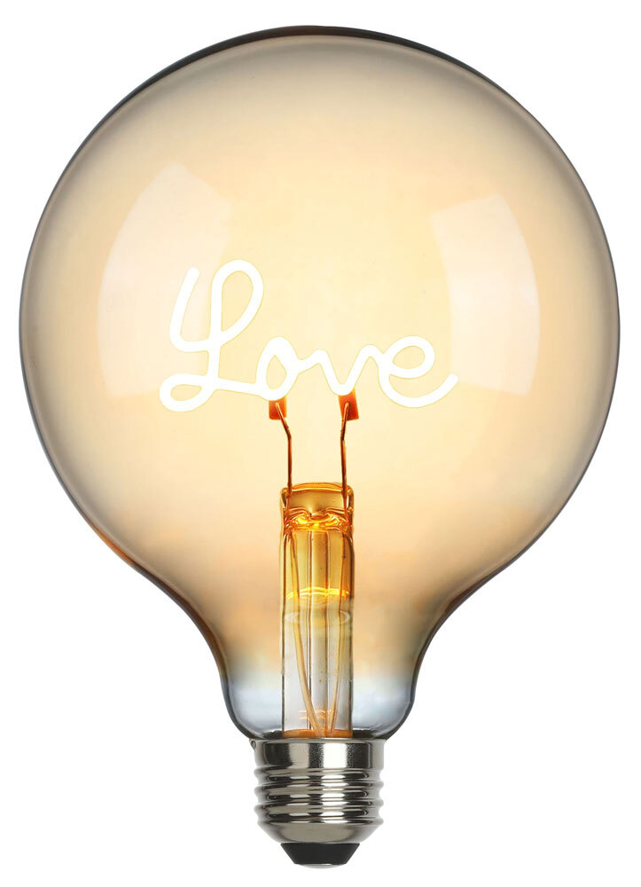 Bringe Sie Liebe und Romantik in Deine Beleuchtung mit dieser wunderschönen Glühbirne, die mit einem bezaubernden Love-LED-Filament ausgestattet ist.