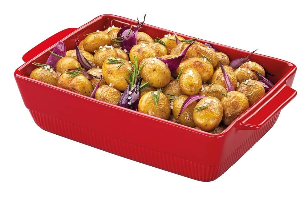 Spring Auflaufform CHALET Rot - Ob herzhafte Lasagne oder raffinierte Gratins – in den robusten Auflaufformen aus hochwertiger portugiesischer Keramik sind Ihre Gerichte bestens aufgehoben.Dank der hitzebeständigen Glasur sind die Formen bis zu 270 °C ofenfest, was sie ideal für köstliche Aufläufe macht – zum Beispiel einen herzhaften Mix aus Kartoffeln, Brokkoli und würzigem Bergkäse. Auch süße Kreationen wie ein Apfel-Brot-Auflauf mit Rosinen, Eiern und Sahne gelingen mühelos. So finden selbst die Brötchen vom Vortag eine köstliche neue Bestimmung. Die eleganten Auflaufformen überzeugen nicht nur in der Küche, sondern auch am Tisch. Servieren Sie Rosmarin-Kartoffeln zum BBQ oder ein cremiges Tiramisu als krönenden Abschluss eines italienischen Abends – CHALET setzt Ihre Gerichte stilvoll in Szene. Nach dem Fest lassen sich die Formen platzsparend stapeln und verstauen. So bleiben sie stets bereit für den nächsten Genussmoment.