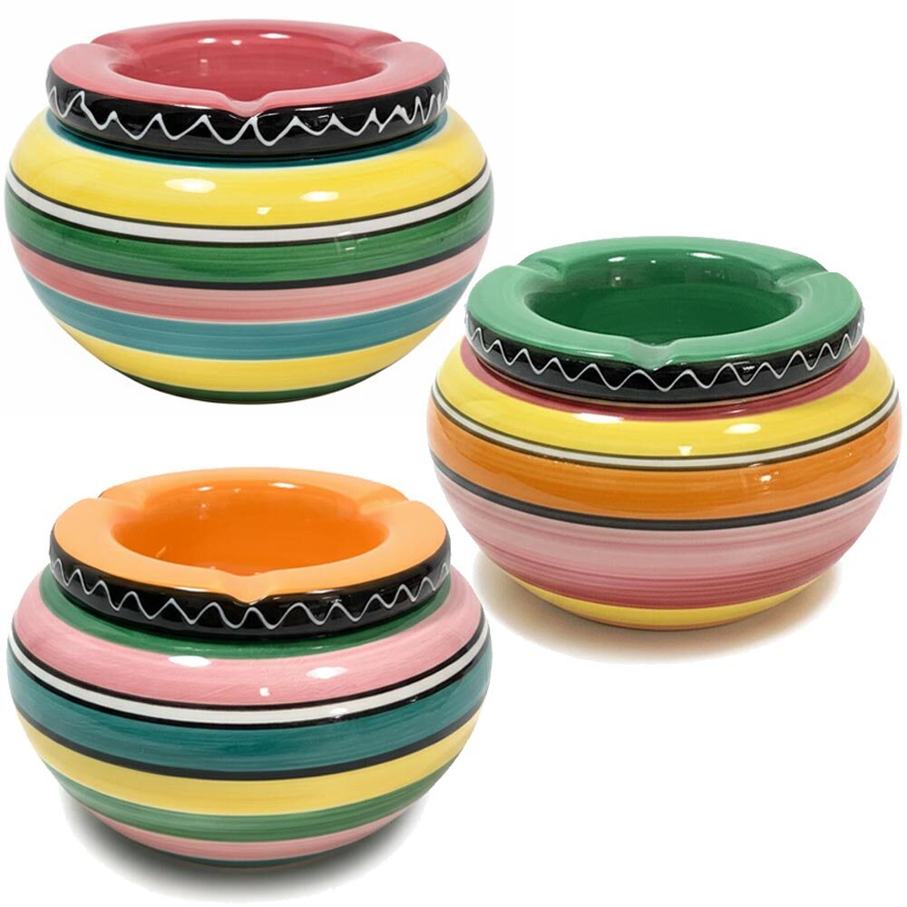 Sturmaschenbecher XL Keramik 14 cm Windaschenbecher für draußen Gestreift