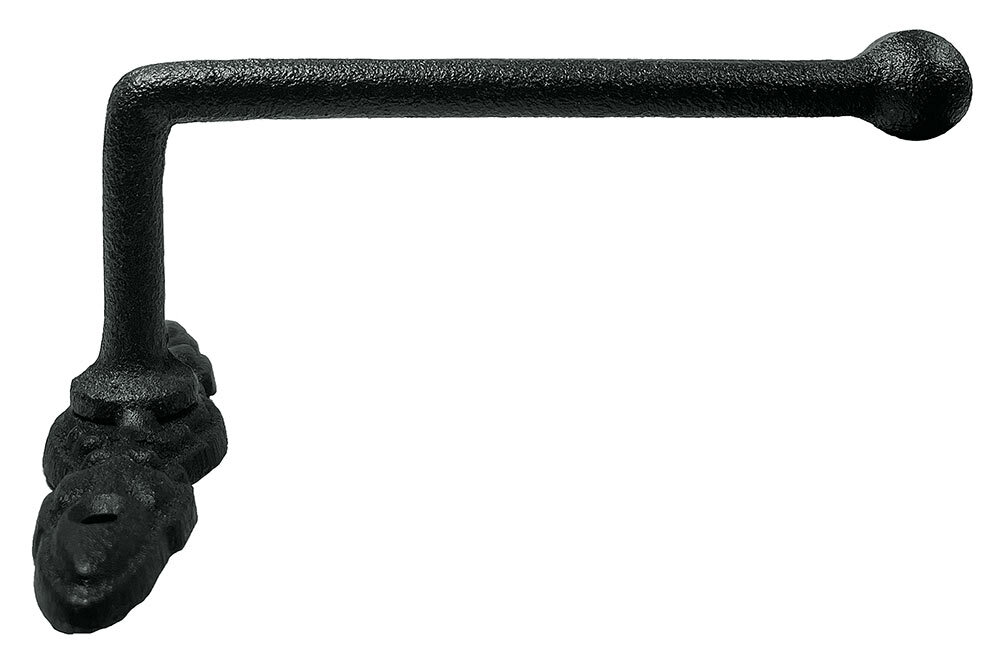 Dieser aussergewöhnliche Toilettenpapierhalter ist im antiken Stil in rustikaler Machart aus Eisen geschmiedet und schwarz lackiert. Die schlichten Verzierungen und die Patina machen diesen WC-Papierhalter zu einem besonderen Blickfang im Badezimmer oder Gäste-WC.