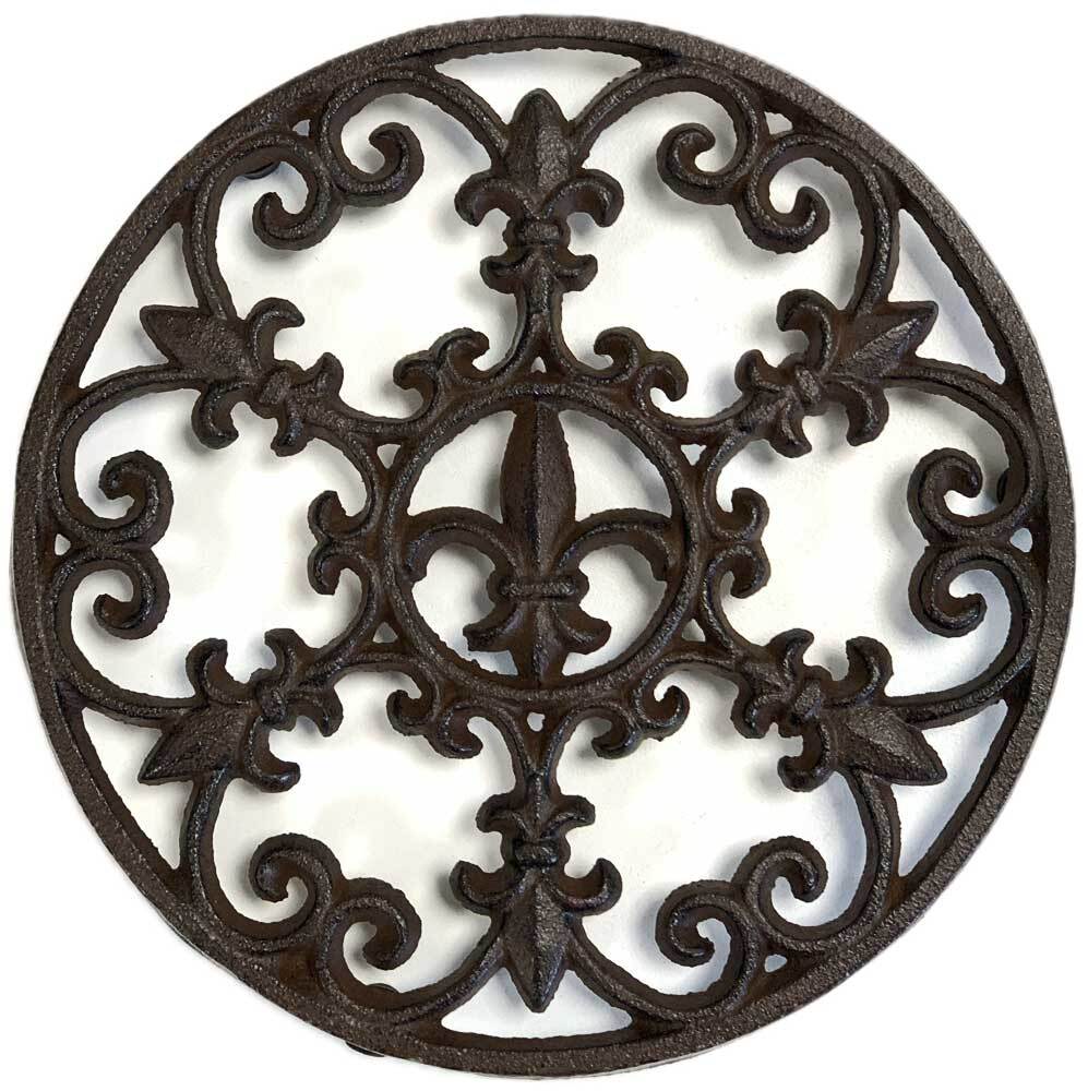 - Dieser runde Untersetzer ist aus schwerem Gusseisen gefertigt und antik-braun lackiert.