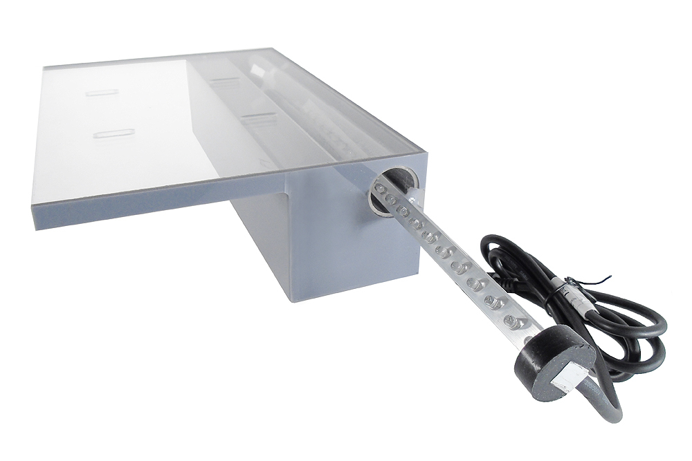 Ubbink Niagara 30 LED Acryl Wasserfall Element - Design-Wasserfall mit langem Auslauf aus Acryl und mit LED-Beleuchtung für den Einbau am Pool. Inklusive Montagewinkeln für das einfache Montieren des Wasserfalles. Der 1 1/2"-Schlauchanschluss befindet sich an der Unterseite, die Wasserversorgung erfolgt über den Rückleitungskreislauf der Filteranlage des Pools. Die LED Leiste kann problemlos an der Gehäuseseite eingesetzt bzw. ausgetauscht werden.