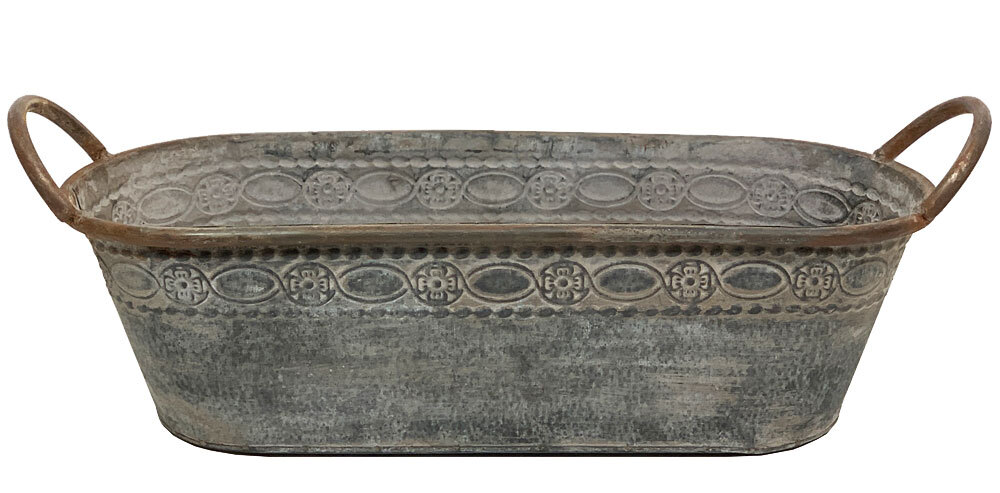Dieser schöne, ovale Pflanztopf ist im Vintage-Stil aus Zink gefertigt und ein toller Blickfang im Garten, auf der Terasse und dem Balkon!