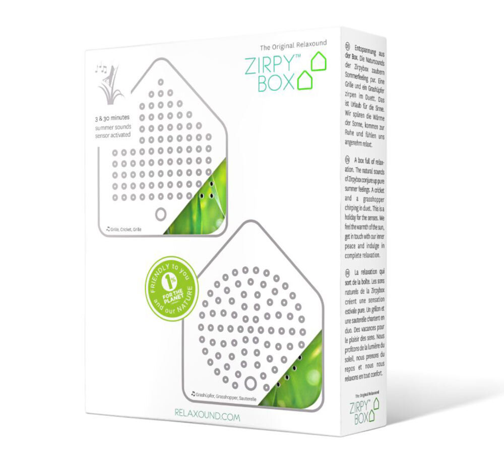 Zirpybox Meadow- Lust auf Sommer? Die Relaxound Zirpybox bietet Dir relaxtes Sommer-Feeling im Doppelpack. In einer Box zirpt eine Grille, in der anderen ein Grashüpfer.